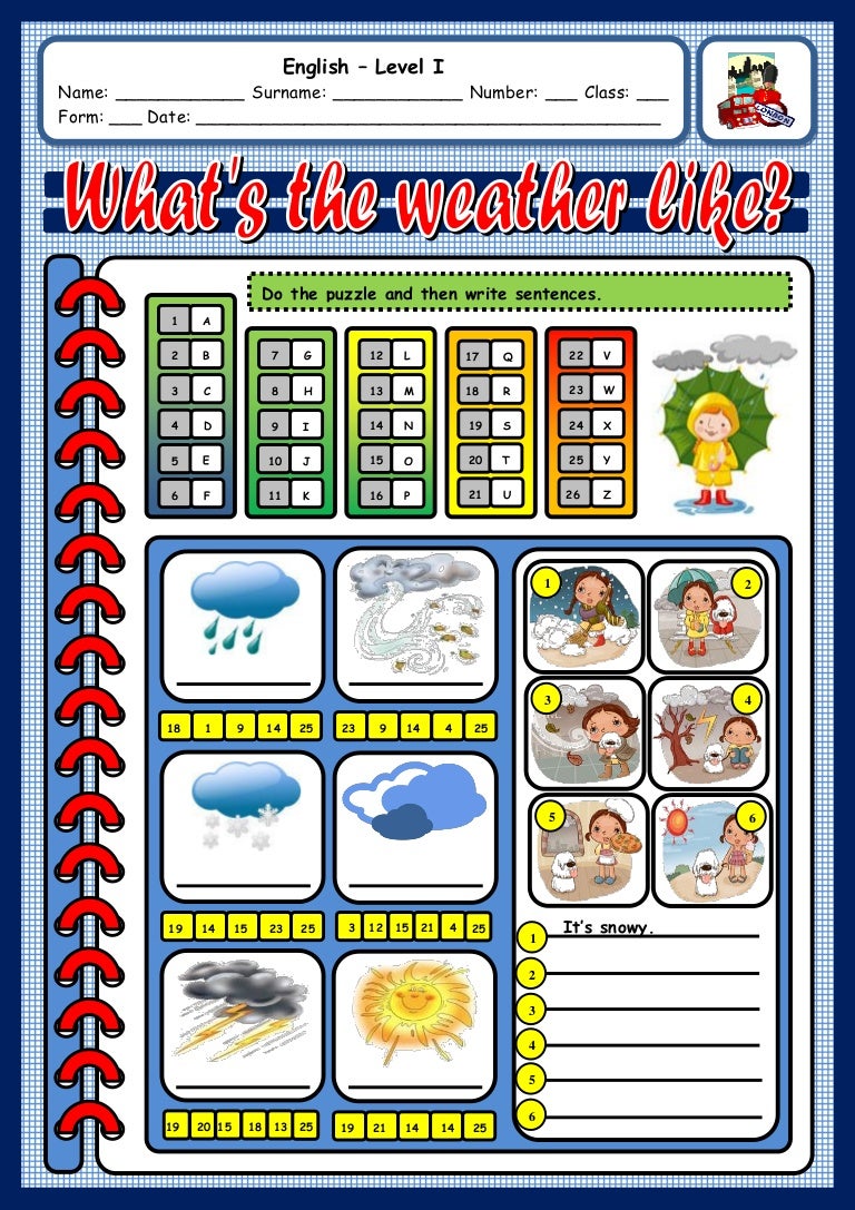 Kindergarten Weather Worksheets | K5 Learning There are three separate worksheets of varying difficulty levels to have students write weather words. Practice the types of weather Students relate images of activities and clothes to weather words, in these picture matching worksheets. Draw the weather This worksheet has students draw specific weather. Create a weather wheel Free Printable Weather Flashcards Worksheet - kiddoworksheets Whether your child needs a little math boost or is interested in learning more, our free worksheets and printable activities cover all the educational bases. Each worksheet was created by a professional educator, so you know your child will learn critical age-appropriate facts and concepts. Weather: worksheets, printable exercises pdf, handouts. - Agendaweb Weather: worksheets, esl printable exercises pdf, handouts. Weather conditions. Talking about the weather